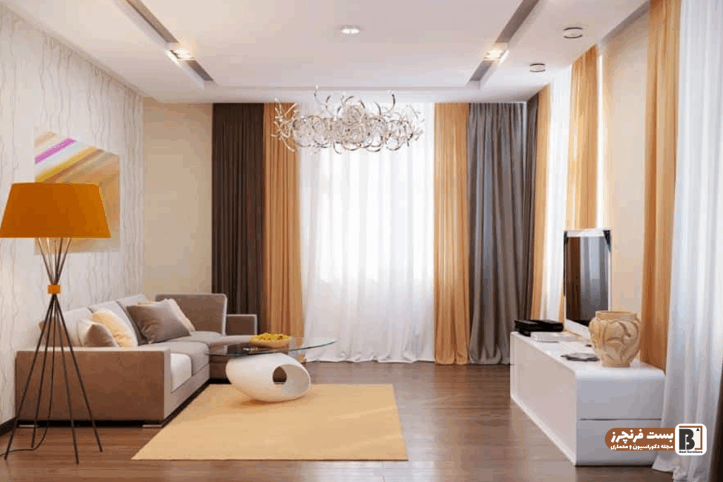 - پرده ها را طوری انتخاب کنید که حداقل 5 تا 10 سانتی متر روی زمین کشیده شوند تا جلوه لوکس پیدا کند.